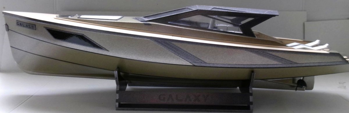 Model af af moderne motoryacht.