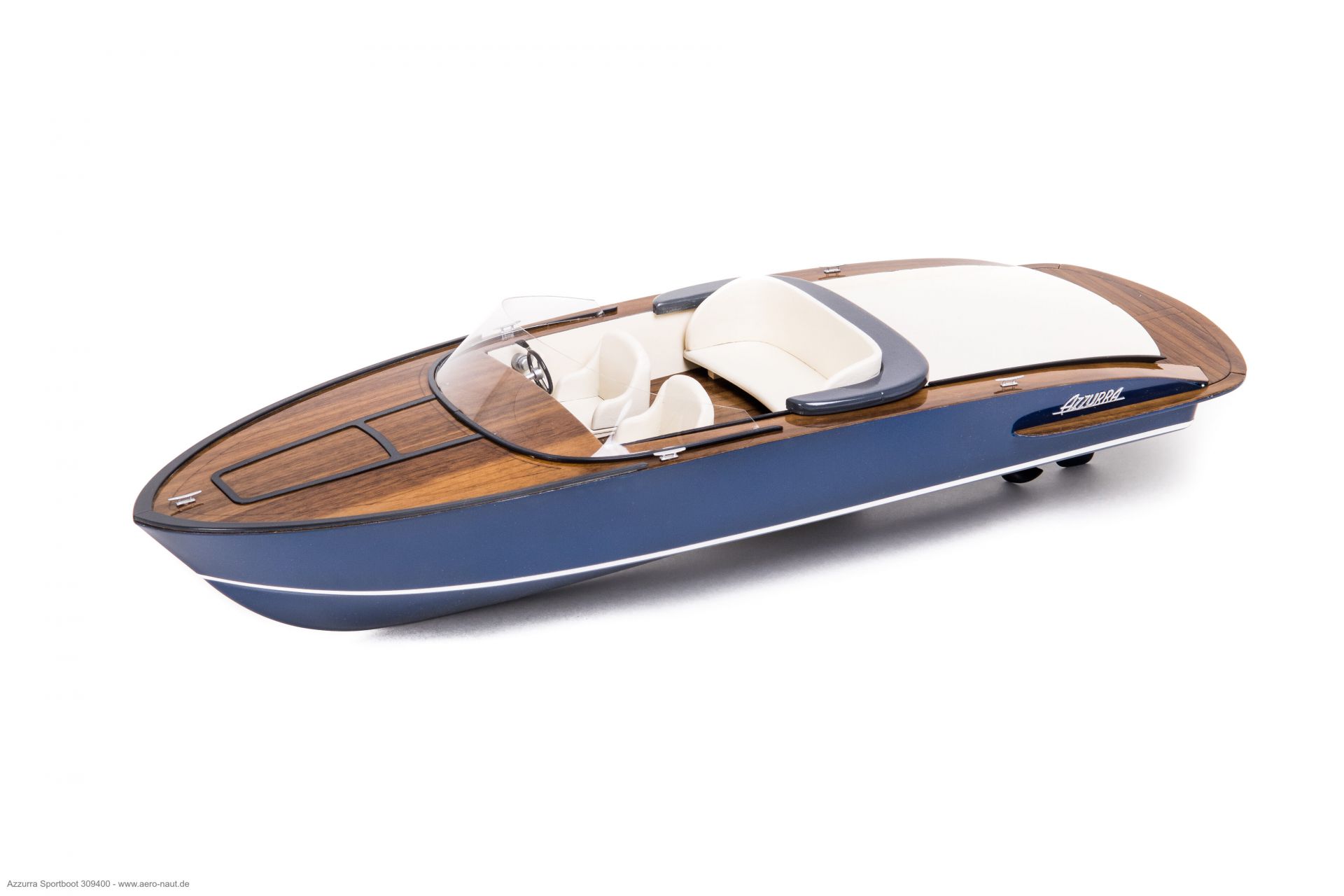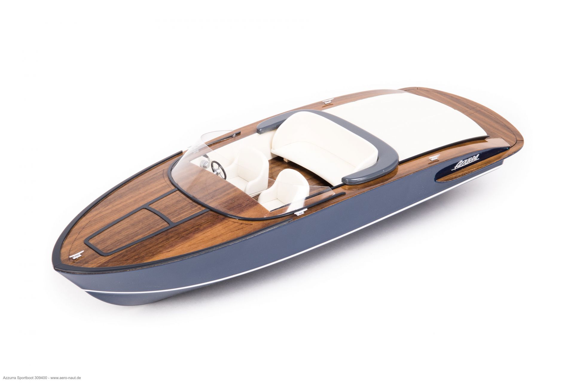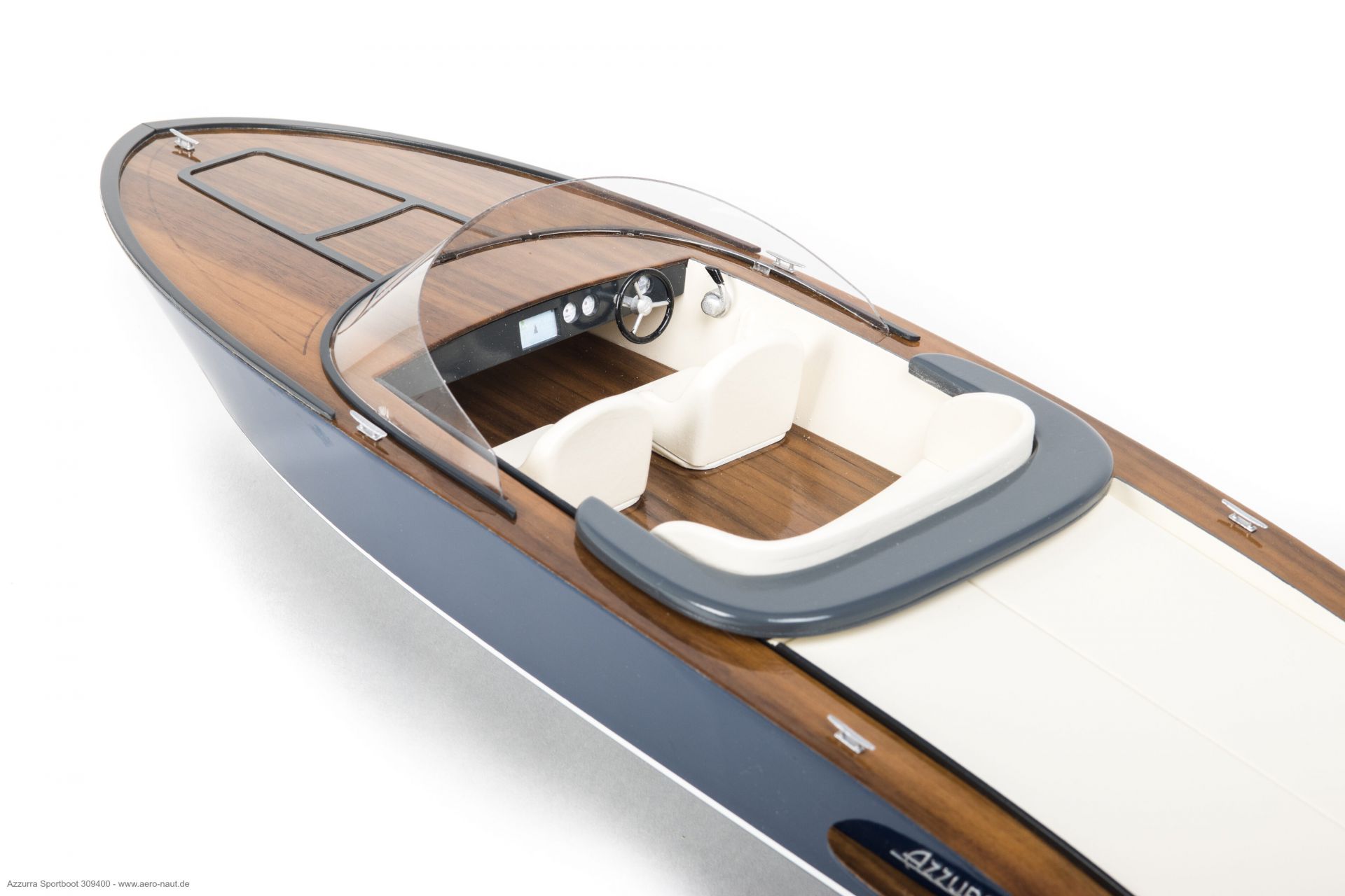 Som model i skala 1/14 vækker Azzurra stor begejstring allerede ved første blik. De klare linjer, det kraftfulde formsprog sammen med de anvendte materialer gør, at modellen har en stor udstråling.