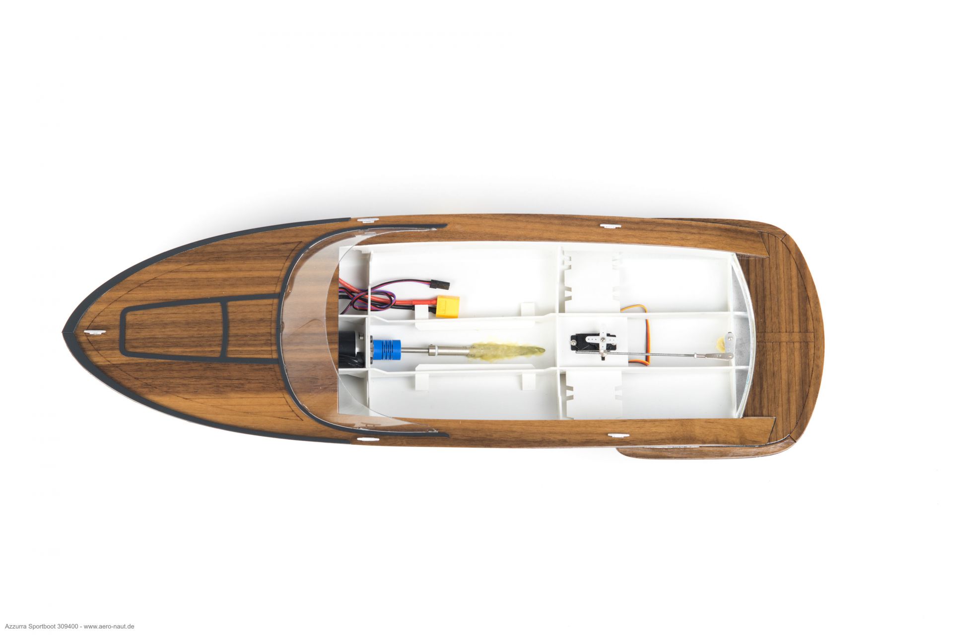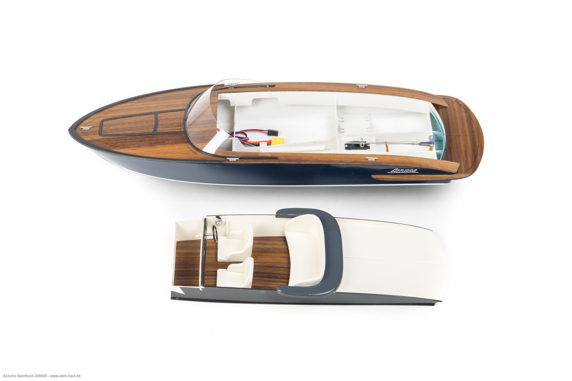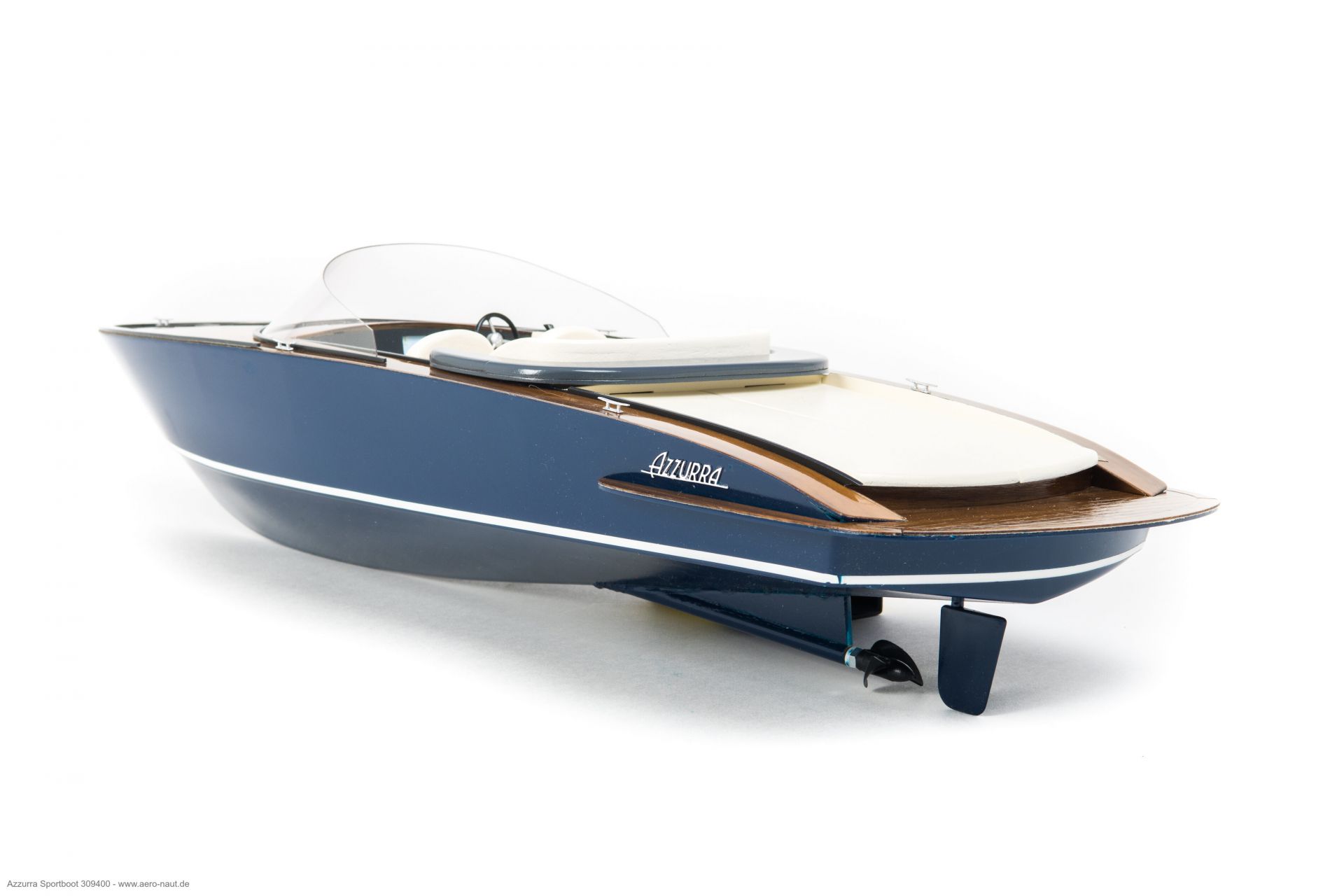 Som model i skala 1/14 vækker Azzurra stor begejstring allerede ved første blik. De klare linjer, det kraftfulde formsprog sammen med de anvendte materialer gør, at modellen har en stor udstråling.