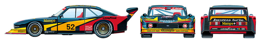 Ford Zakspeed Capri Turbo blev udviklet til at konkurrere i DRM (Det Tyske Mesterskab i Rundbaneracing) og havde en lav, bred karrosseriform samt en 1.427 cm³ rækkefirer på 375 hk.