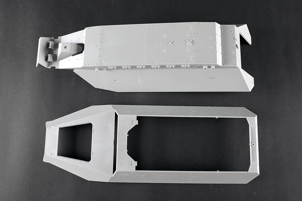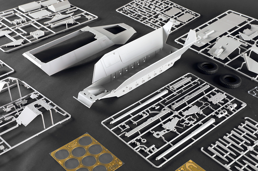 Modellen kan bygges med åbne eller lukkede luger og døre.