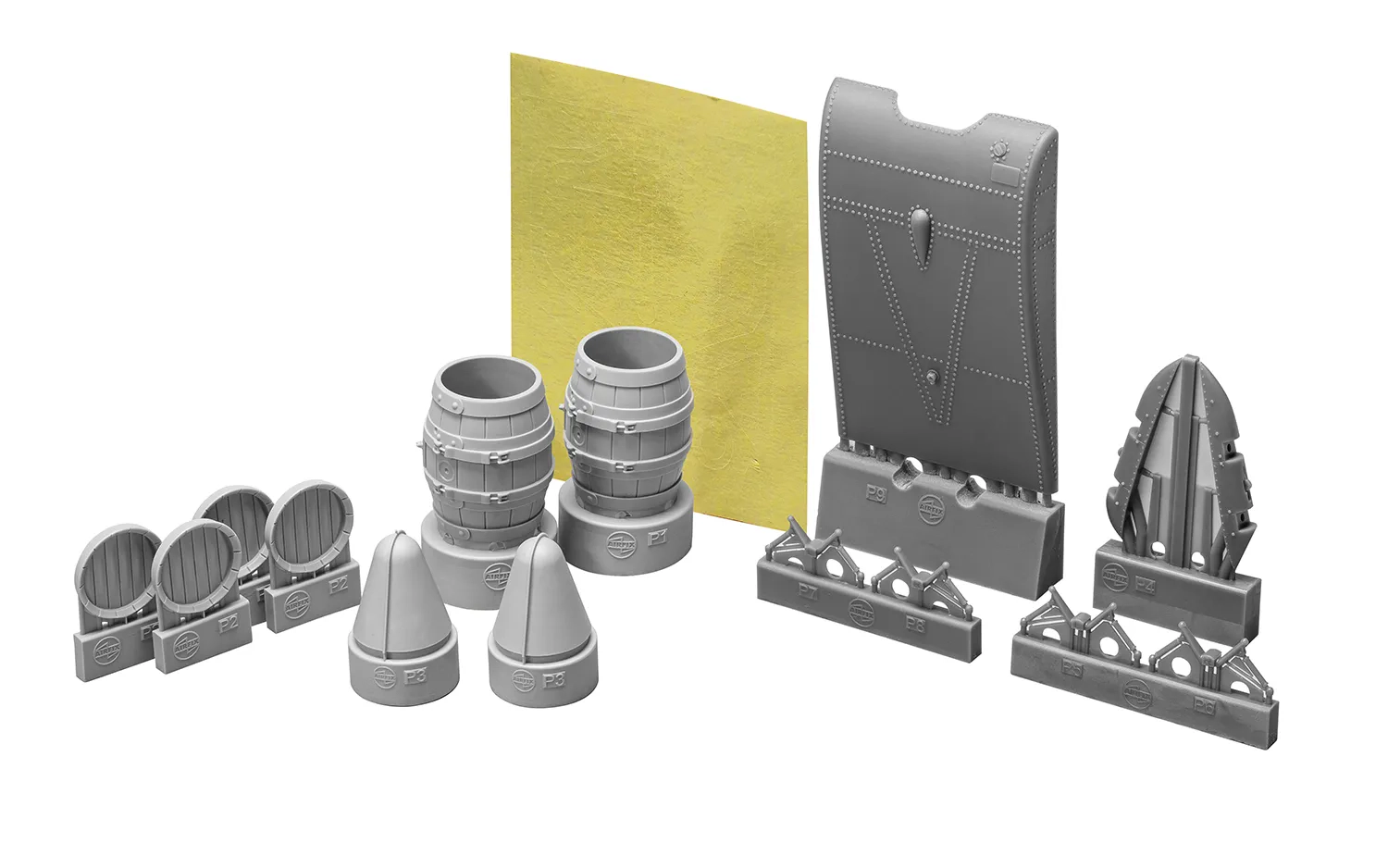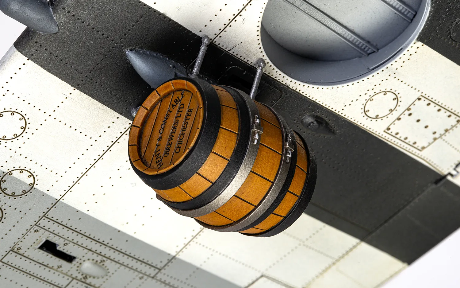 Vi har også tilføjet ekstra resin-dele, som er essentielle for at udvide historien bag din model. Disse inkluderer to øltønder med låg, to næsekegler, to bombestativer og en ekstra brændstoftank.