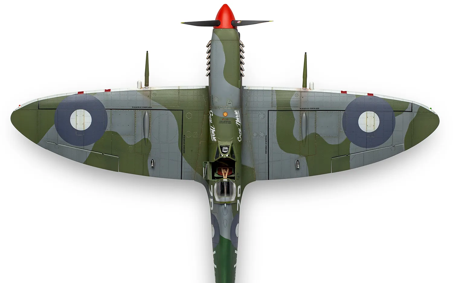 No. 457 Squadron fra Royal Australian Air Force blev kendt som ‘Grey Nurse Squadron’, efter at de havde malet deres nyankomne Spitfire Mk.VIII-fly med karakteristiske hajgab. Eskadren havde oprindeligt til opgave at forsvare Darwin, men blev hurtigt flyttet nordpå til Morotai og senere til Labuan for primært at udføre angreb mod japanske styrker. Det portrætterede fly tilhører eskadrens chef, Sqn. Ldr. Bruce Watson DFC.