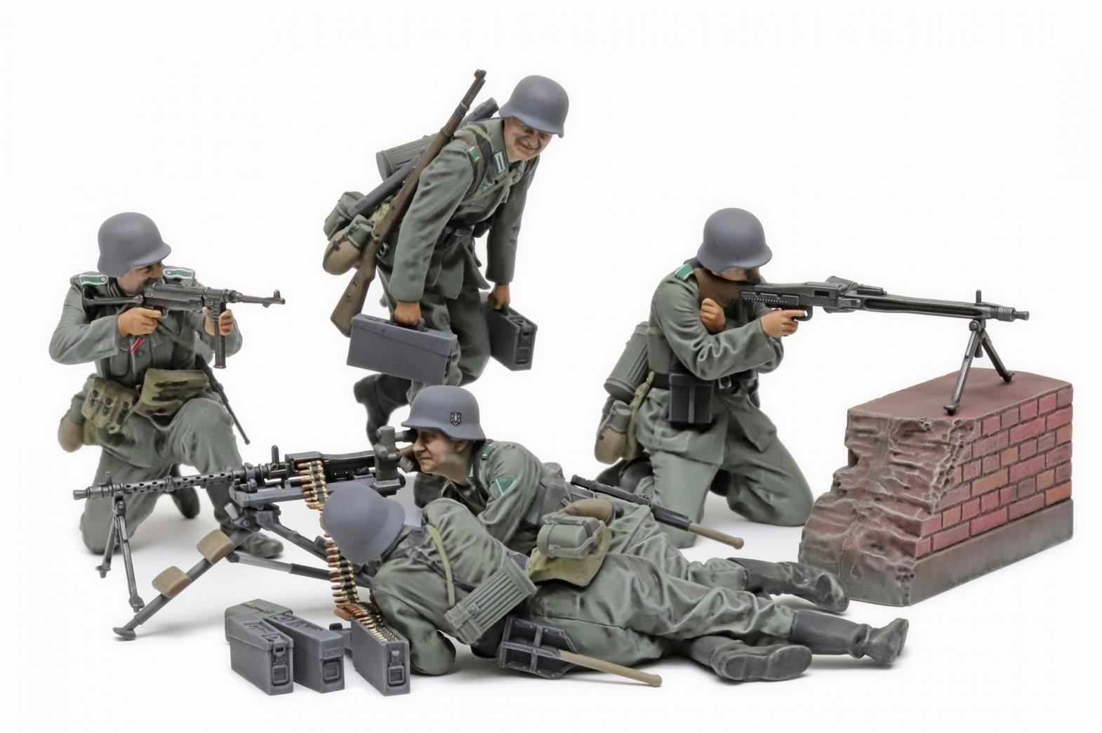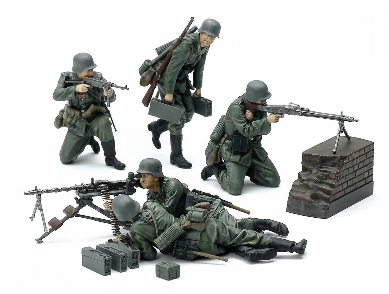 Tyske soldater fra Anden Verdenskrig med MG34 og MG42 maskingeværer.