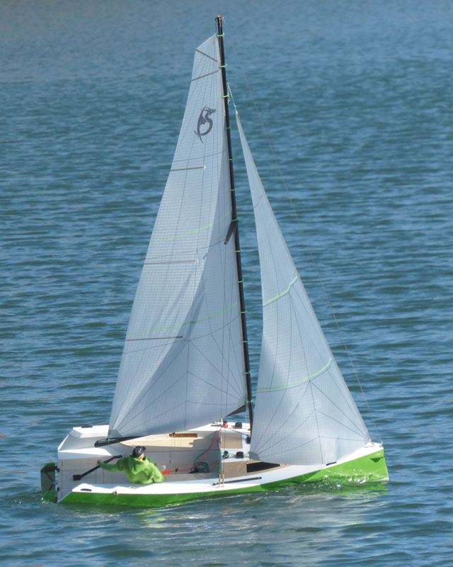 DRAGO har det for denne bådkategori typiske store, åbne cockpit, et dobbelt rorsystem, en wave-piercing stævn med udskydeligt bovspryd samt en skrogform, der forfra går fra rundspant til knækspant i agterområdet. Byggesættet er udformet som et komplet sæt og indeholder derfor hele riggen med CFK-mast, bom, udskårne sejl og alt, hvad der kræves for at rigge båden. Da modellen ikke har selvslående fok, kræves der til RC-drift mindst to sejlvindere, som kan styre fok og storsejl uafhængigt af hinanden.