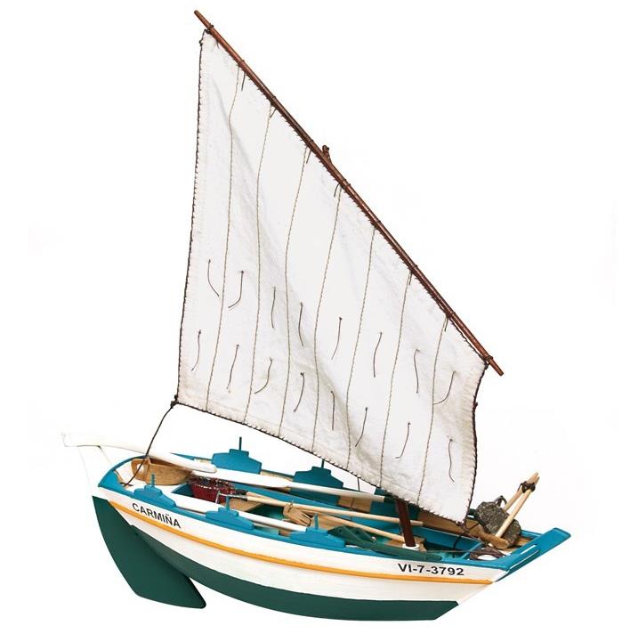 Med sin længde på 16 fod og en bredde på 6 fod, er Carmiña nem at håndtere både på vandet, og når hun skal trækkes på land takket være den flade bund. Som anker bruges stadig en traditionel "poutadas" - en sten.