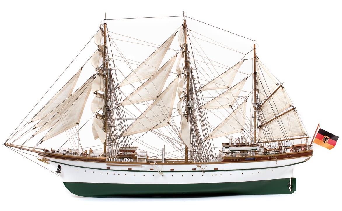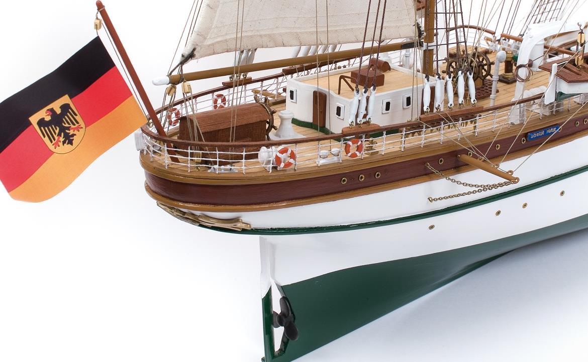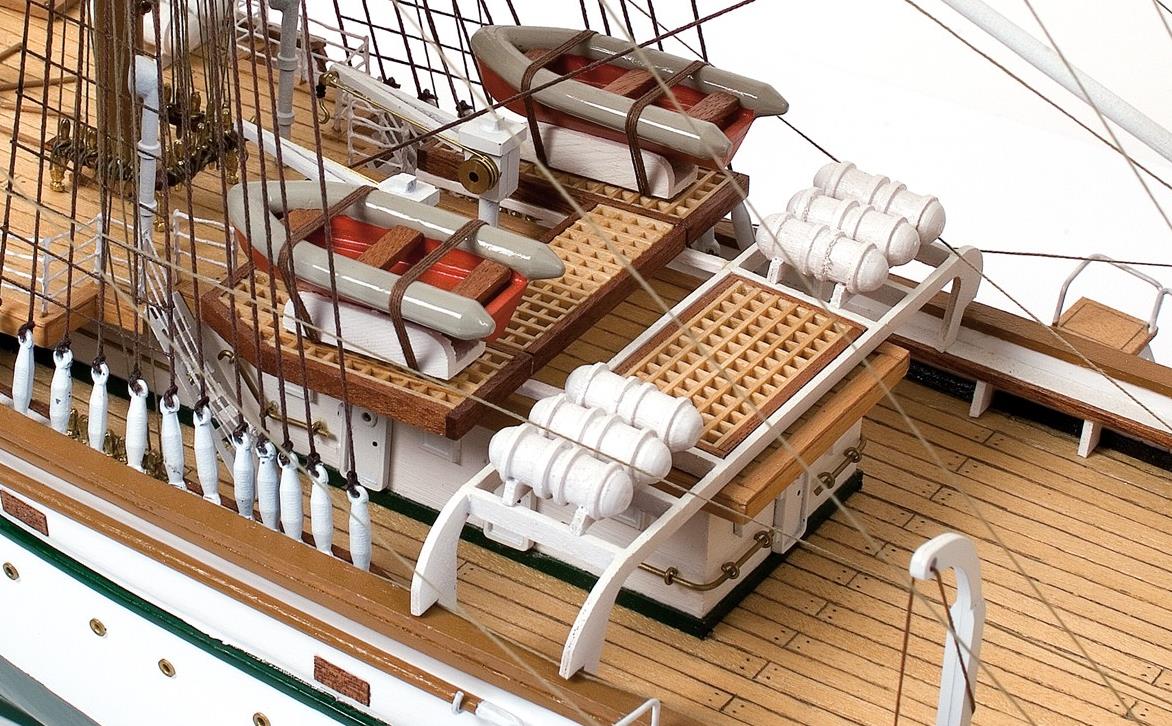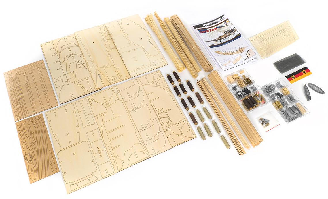 Byggesættet leveres med alle fittingsdele og laserskåret trædele. Skroget opbygges med spanter på køl, der efterfølgende beklædes med lister. Detaljeret samlevejledning.