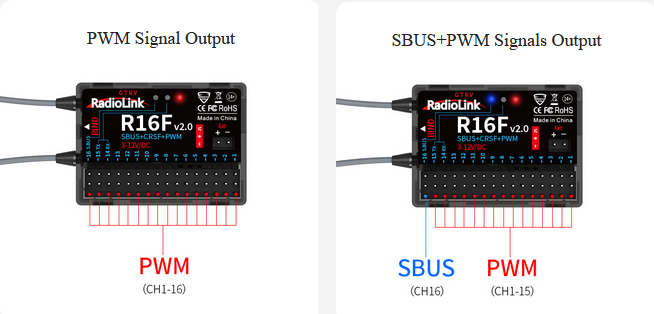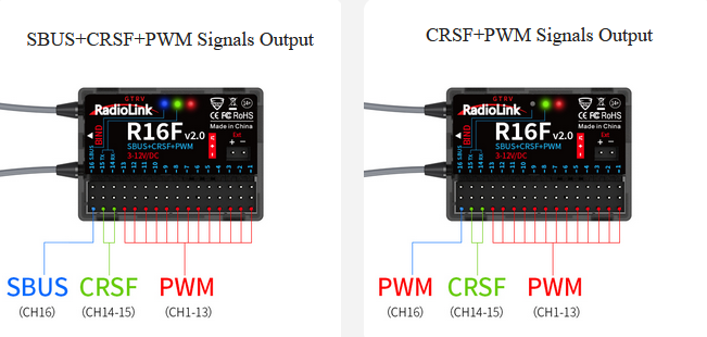 • Signal-udgang: SBUS + CRSF + PWM