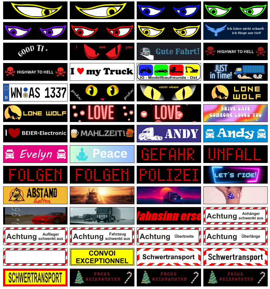 Valget af den GIF, der skal vises på skærmen, sker enten på radiosenderen via en proportional kanal, en skifteindgang eller en tilfældighedsgenerator.