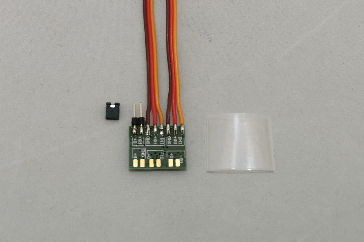 Modulet kan enten drives direkte via modtagerens spænding eller forsynes via en ekstern strømkilde. Denne fleksibilitet gør det muligt at bruge modulet i mange forskellige modelkonfigurationer.