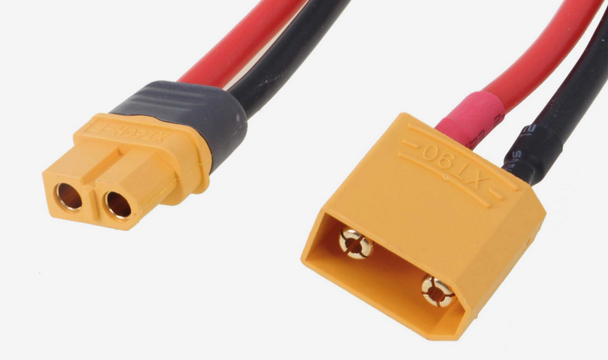 Dette kabel kan tilsluttes batteri med XT-90 stik, så batteriet kan tilsluttes et ladeapparat med XT-60 udgang eller en fartregulator med XT-60 stik.