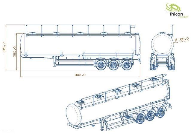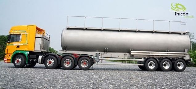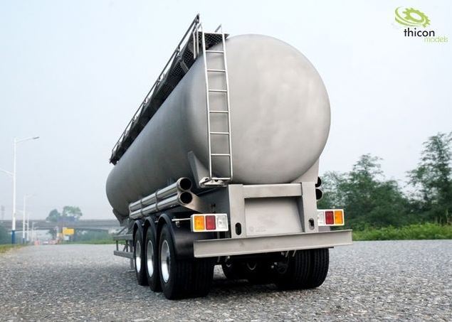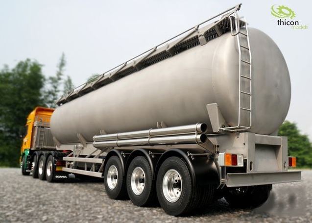 3-akslet tank-trailer udført i V2A stål. Leveres fabrikssamlet, sandblæst og umalet.