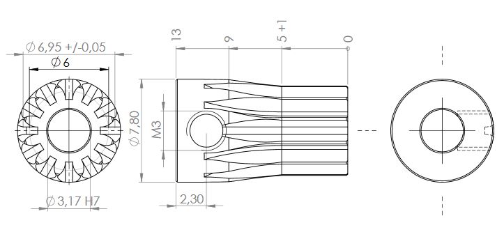 Tandhjul m0,5 Ø7 mm 12 tænder boring Ø3,2 mm