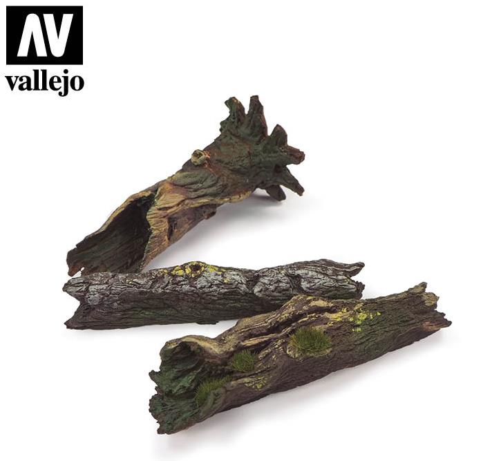 Træ væltede træstammer i varierende størrelser. Velegnet til diorama med tema fra Europa. Kan med fordel suppleres med mos, græs og andre produkter fra Vallejo Scenery