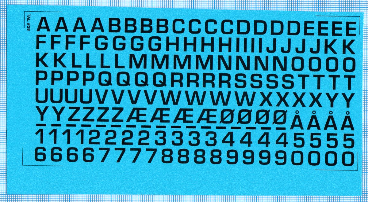 RDAF bogstaver og tal - sorte decals, 7 mm høje