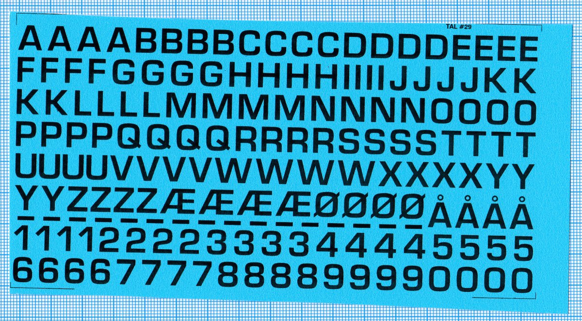 Billede viser decals med millimeterpapir som baggrund.