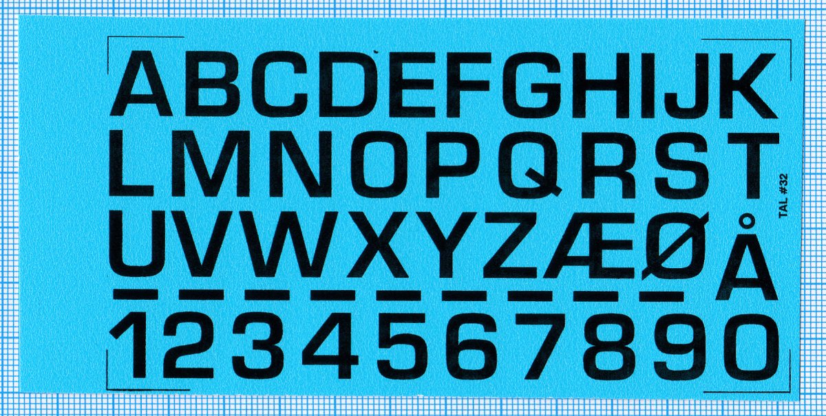 RDAF bogstaver og tal - sorte decals, 12 mm høje