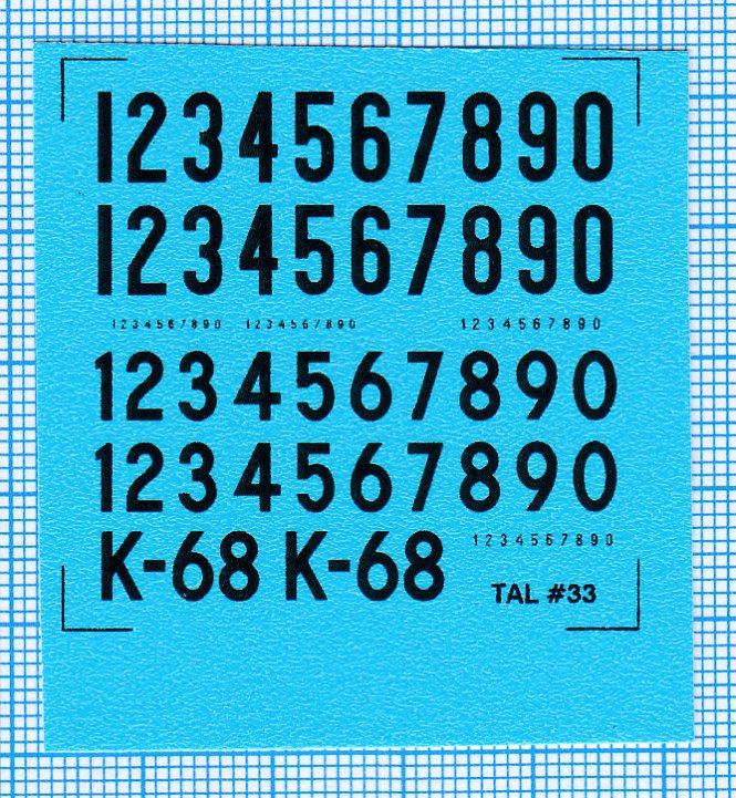 Billede viser decals med millimeterpapir som baggrund.