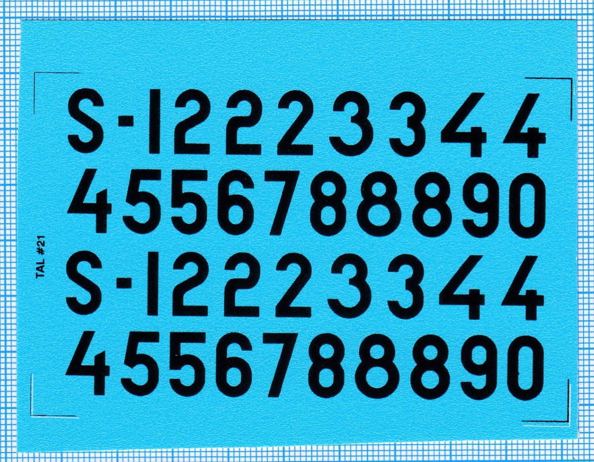 RDAF bogstaver og tal - sorte decals, 12 mm høje