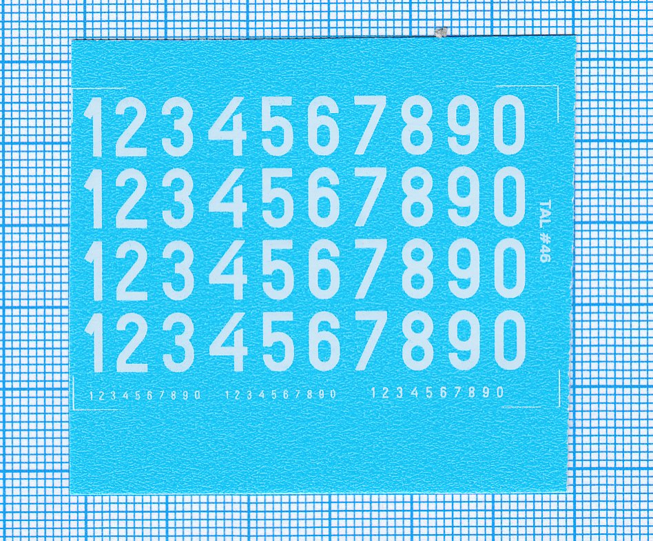 RDAF tal - hvide decals, 7 mm høje