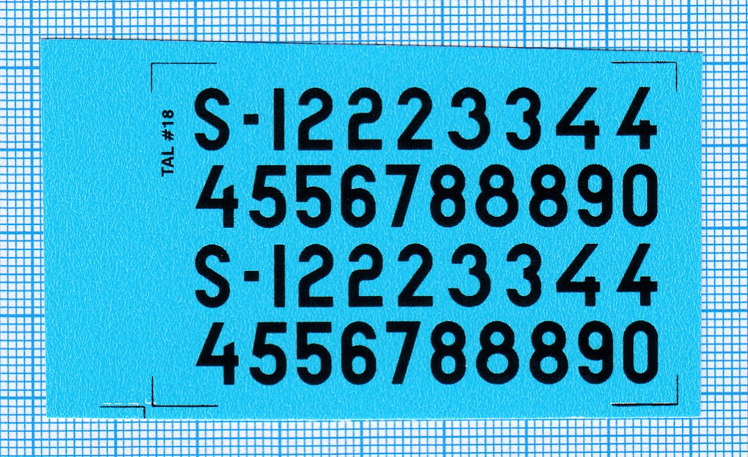 Billede viser decals med millimeterpapir som baggrund.