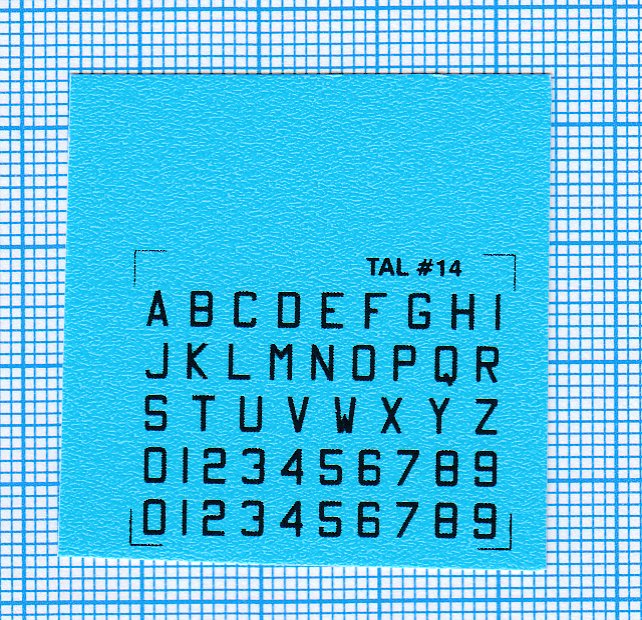 Billede viser decals med millimeterpapir som baggrund.