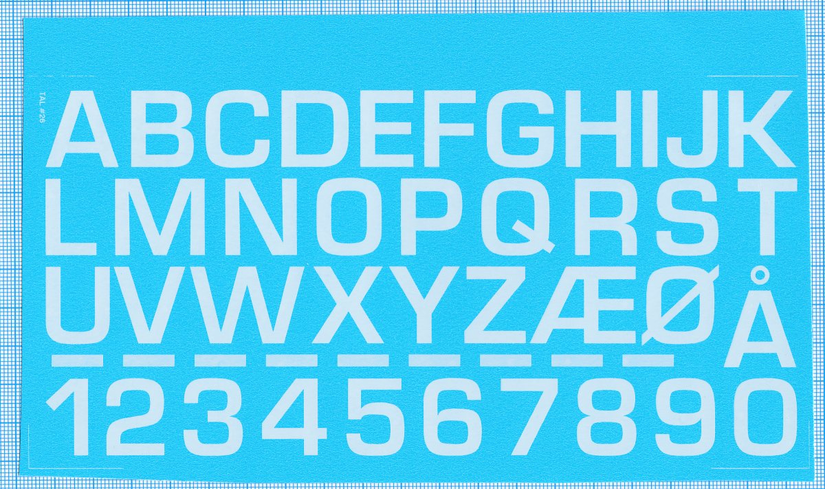 RDAF bogstaver og tal - hvide decals, 20 mm høje