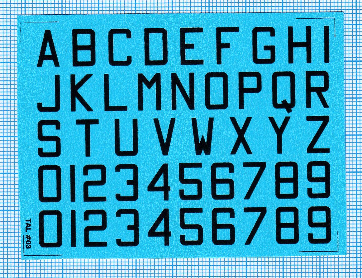 RDAF bogstaver og tal - sorte decals, 10 mm høje