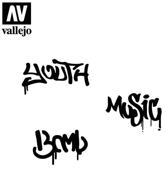 Vallejo Stencils er en samling af diverse stencils og temaer til modelbyggeren. De er udført i felksibelt materiale, der nemt tilpasser sig overfladen på modellen.