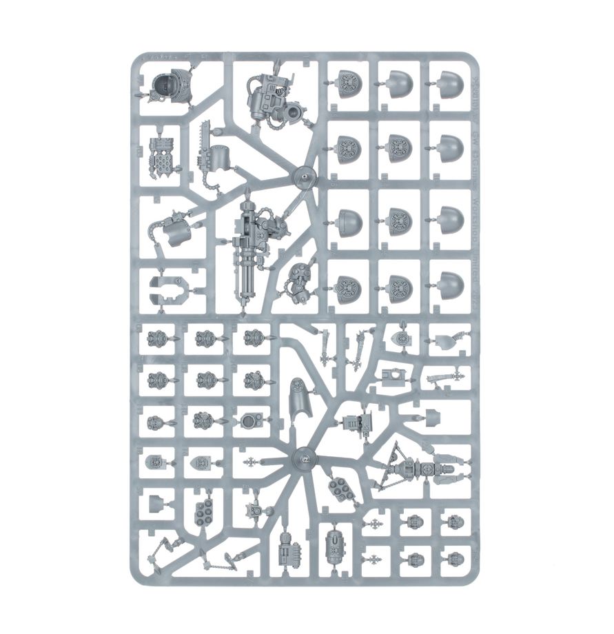 Dette alsidige sæt inkluderer en teleport homer på sin egen base og giver masser af kosmetiske valgmuligheder til at tilpasse dine Terminators – udskiftelige fist- og våbenarme, purity seals og kampudmærkelser, dekorerede tassets, forskellige skjolde til Sergeantens bryst, samt nok bare hoveder eller hjelme til hele din enhed.