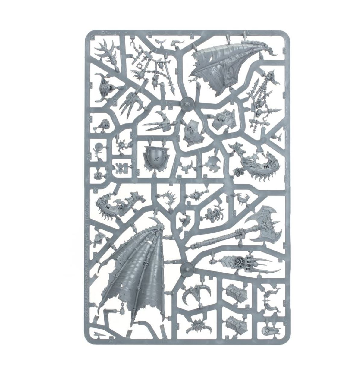 Sættet består af 112 plastkomponenter og 1 Citadel 60 mm rund base. Miniaturen kræver samling og leveres umalet – vi anbefaler Citadel Plastic Glue og Citadel Colour‑maling.