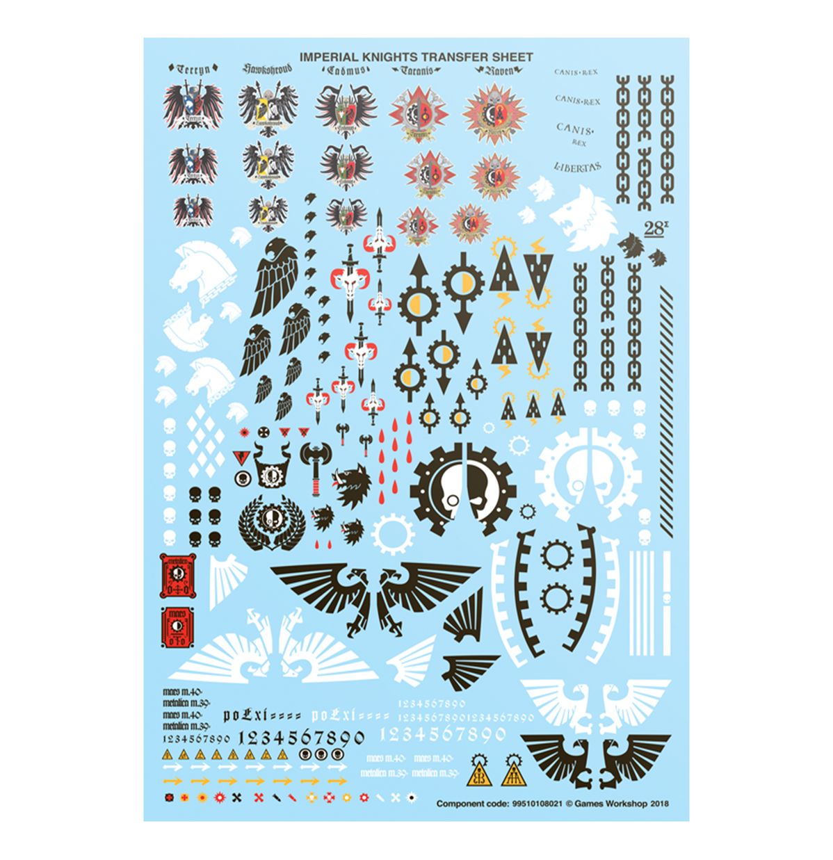 Dette sæt indeholder 237 plastikkomponenter og 1x Citadel 170 mm x 109 mm oval base. Sættet inkluderer også 1x Knight Questoris Transfer Sheet med 302 højkvalitets vandmærketransfers til at dekorere din miniature.