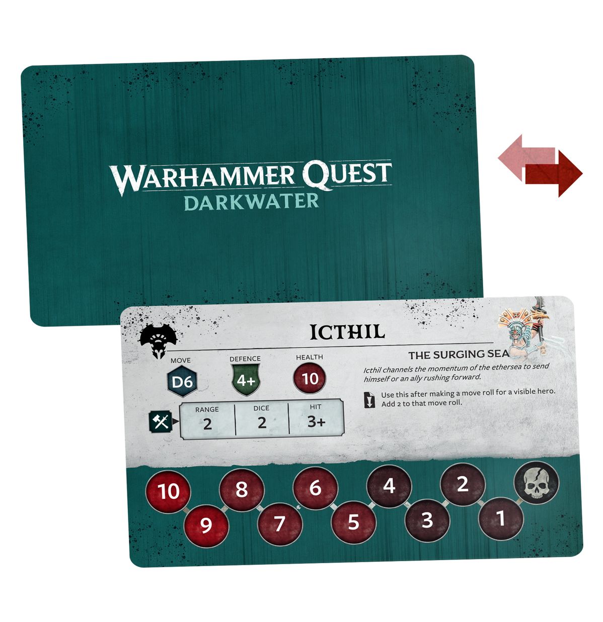 • Et sæt tokens og kort til Warhammer Quest: Darkwater, inklusive 8 dobbeltsidede tokens, 4 Idoneth Deepkin‑karakterkort og 4 udstyrs/opgraderet udstyr‑kort